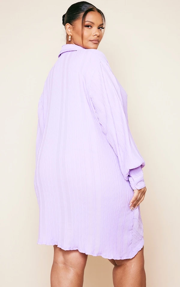 Plus Robe chemise texturée lilas à détail drapé et manches longues