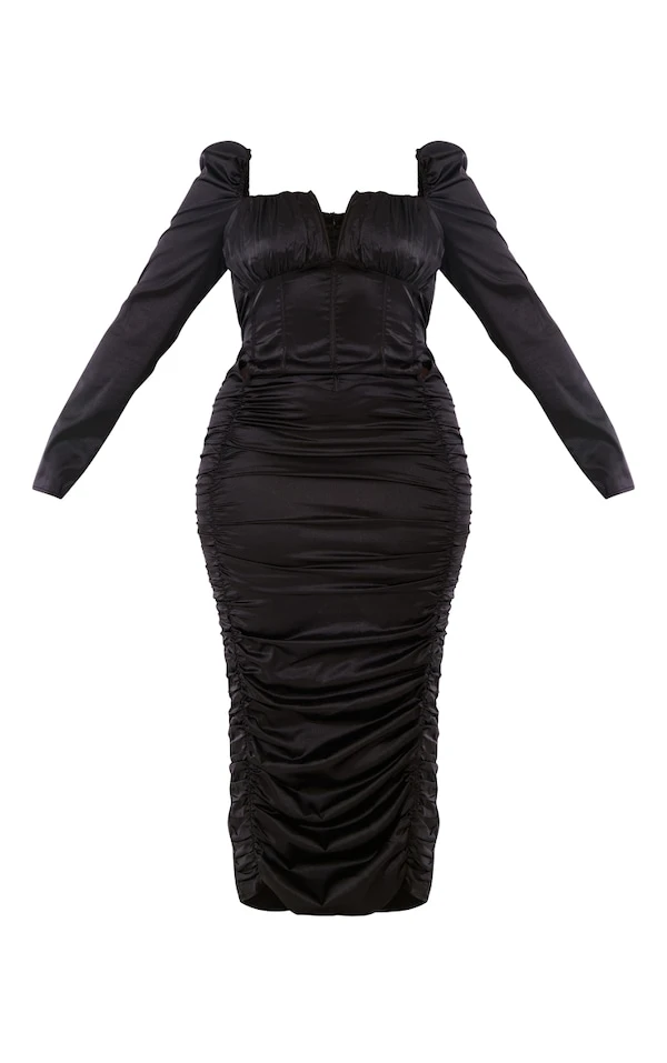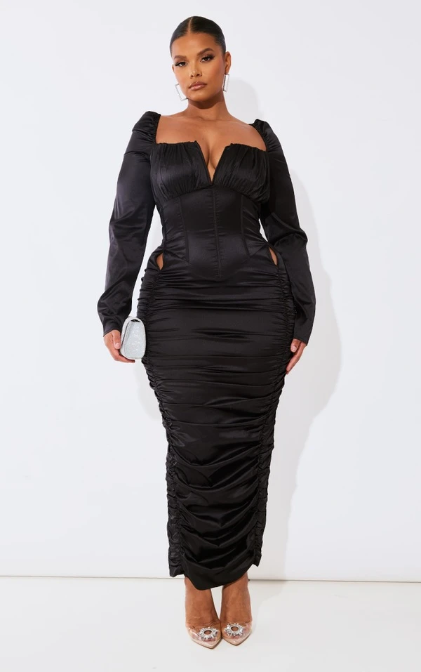 Trop belle dans cette robe corset longue. Avec sa matière satinée de couleur noire et le détail des ses fronces, on l’adore. Pour une soirée, on la porte avec une paire de mules et quelques accessoires. Easy, surtout avec vous !