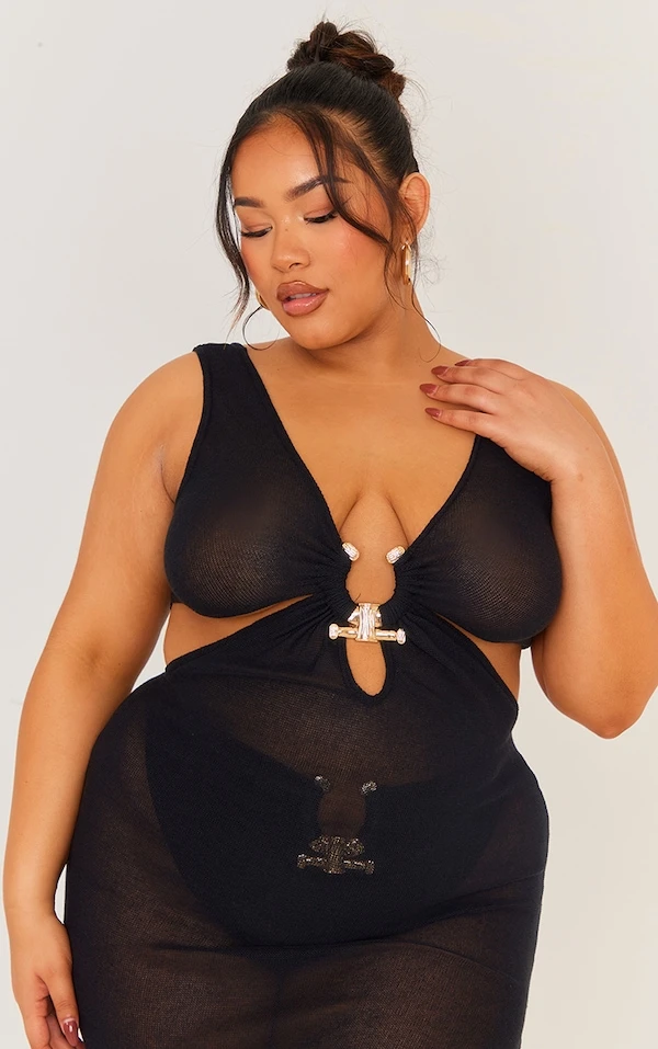 Plus Robe de plage longue découpée noire à empiècement martelé