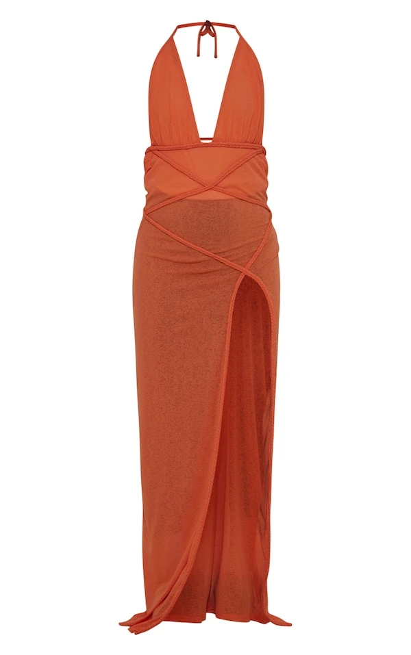 Plus Robe de plage longue fendue orange décolletée à détail tressé