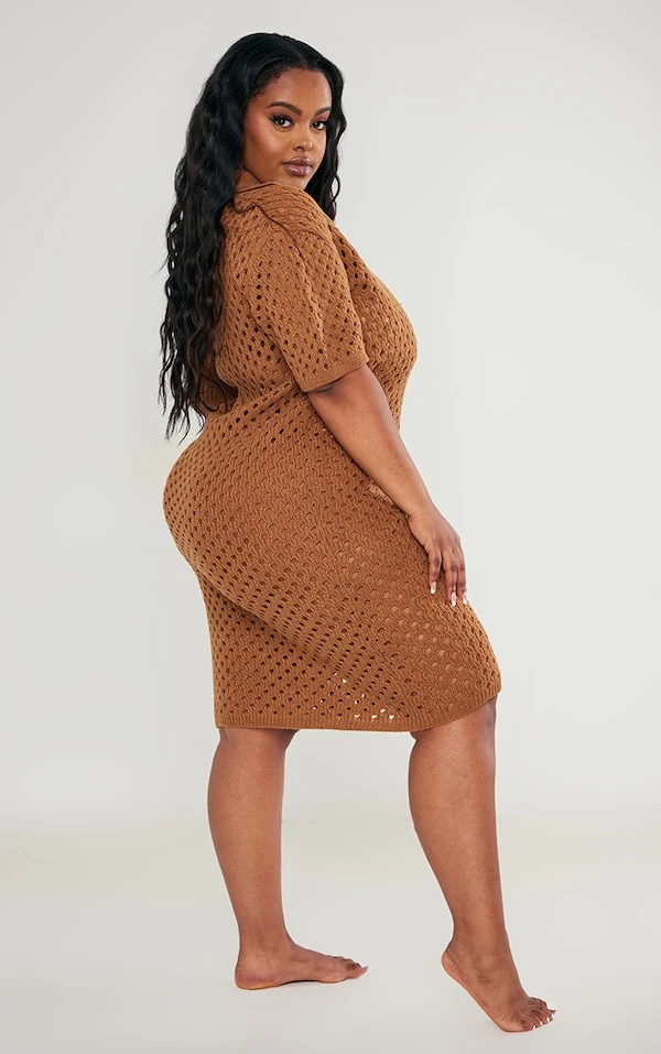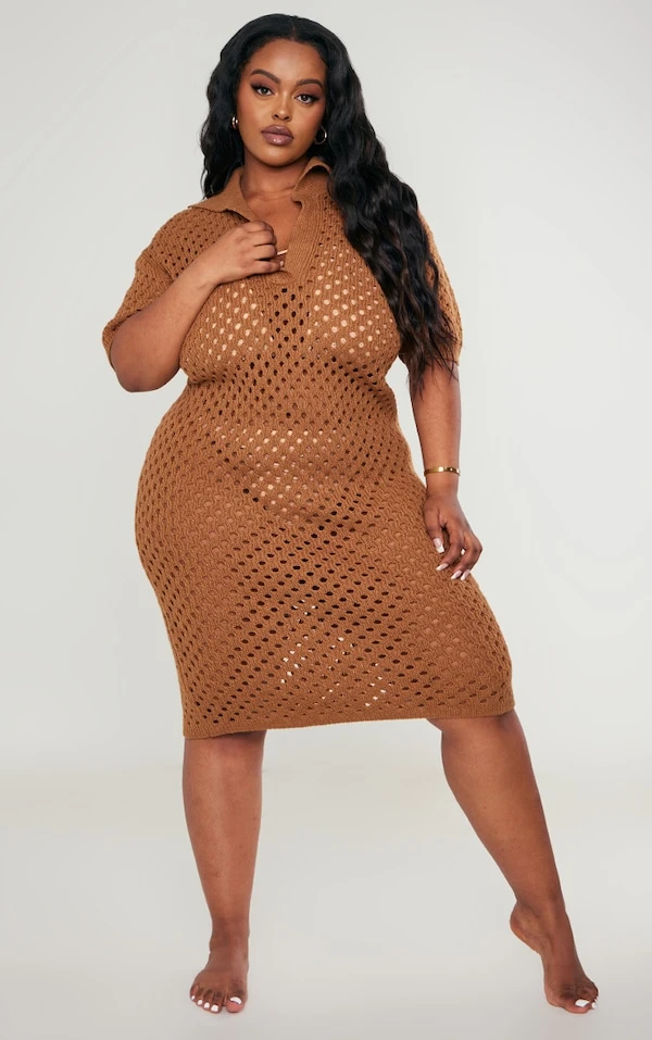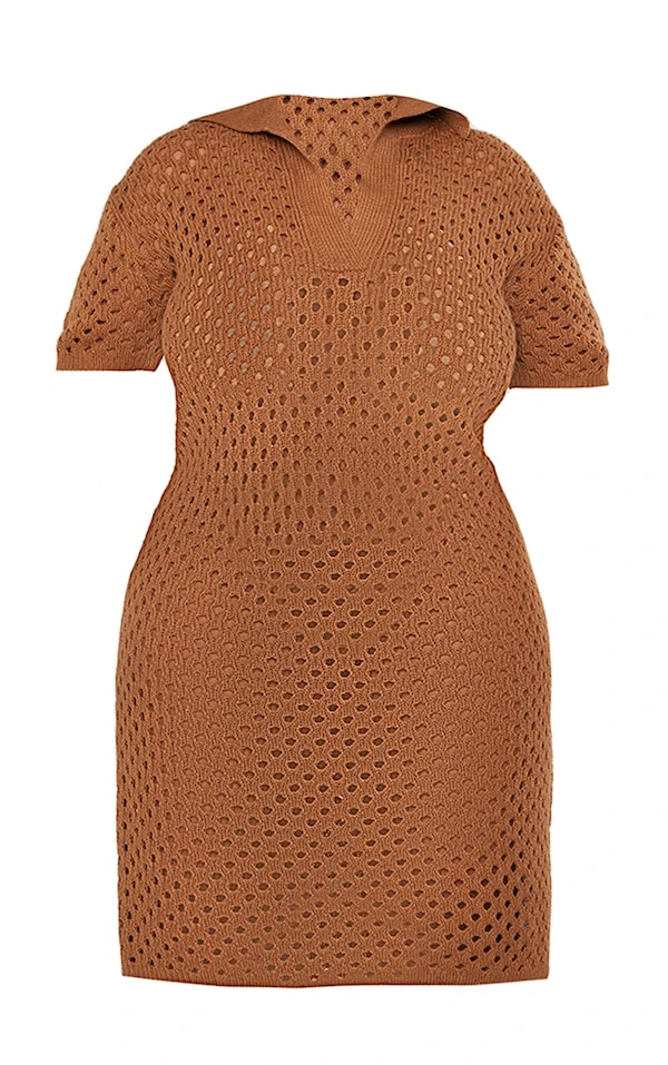 Plus Robe de plage mi-longue en maille tricot marron