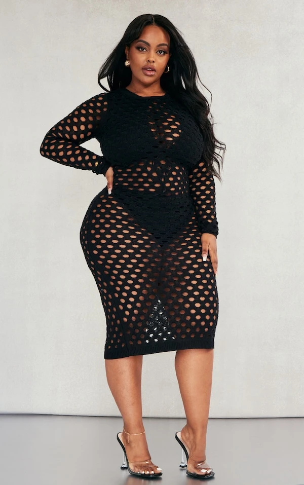 Trop belle, surtout dans cette robe de plage. On aime beaucoup l’effet texturé de sa matière en maille tricot et sa couleur noire qui ne déçoit jamais. Portez cette robe de plage par-dessus le bikini assorti et installez-vous confortablement sous le soleil. Que les vacances commencent !