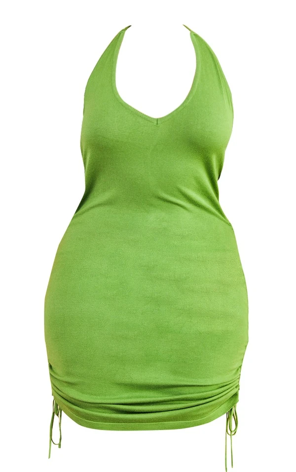 Plus Robe dos nu col en V en maille vert vif à fronces