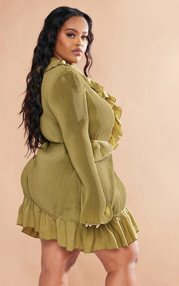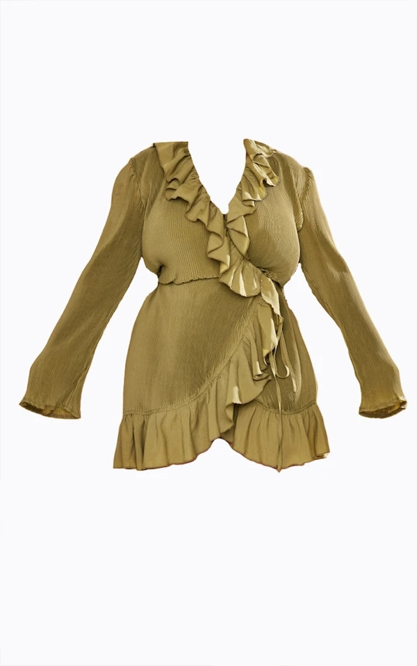 Plus Robe droite cache-coeur plissée vert olive