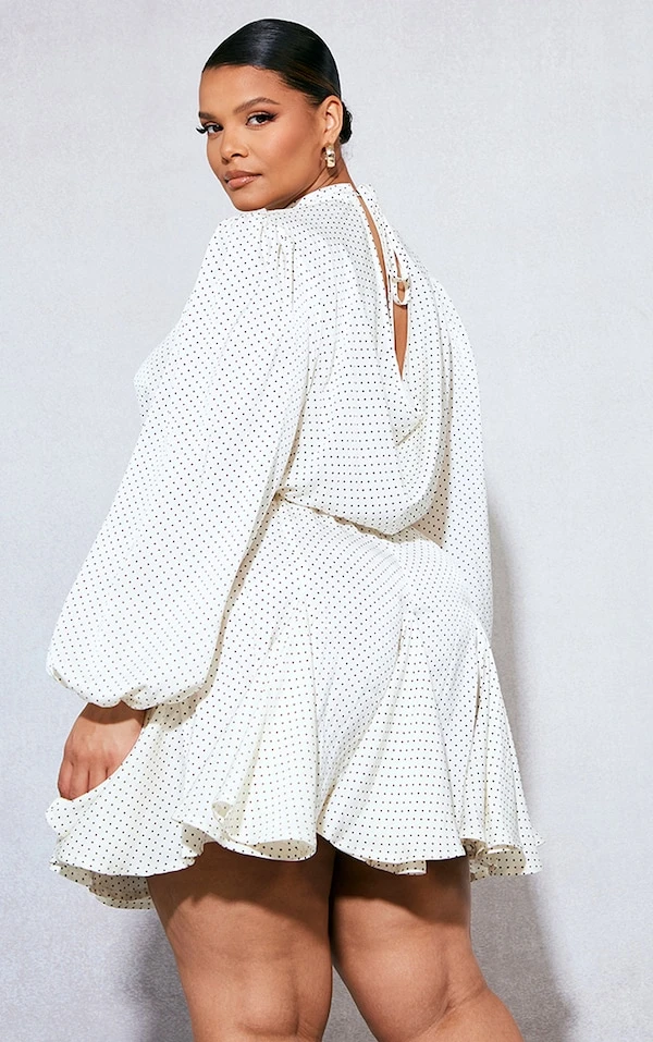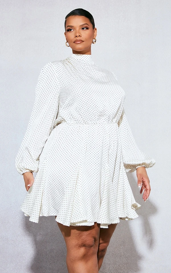 Plus Robe droite crème imprimé pois à ourlet plissé