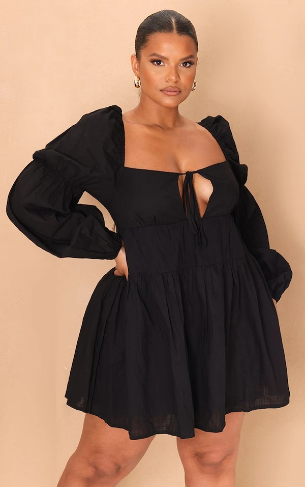 Jamais de fashion faux pas avec une robe noire comme on l’aime ! On adore cette pièce grande taille avec ses volants, son décolleté et son laçage au dos. Un sac à main et des mules à talon complèteront le look. Go se la jouer princesse à cette soirée !