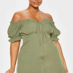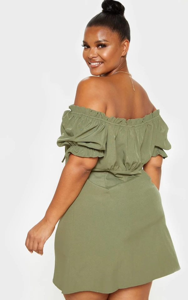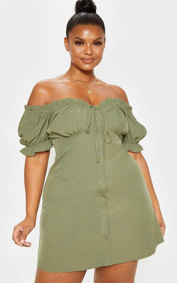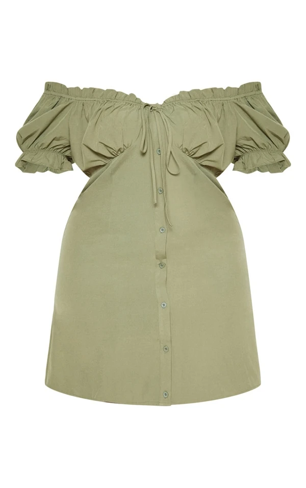 Archi-cool le kaki! Sur cette robe à la coupe droite au col bardot canon et aux boutons sur la longueur, c’est beaucoup trop cute : quand vous l’enfilez vous êtes une babe façon rétro. On adore ce mood 3