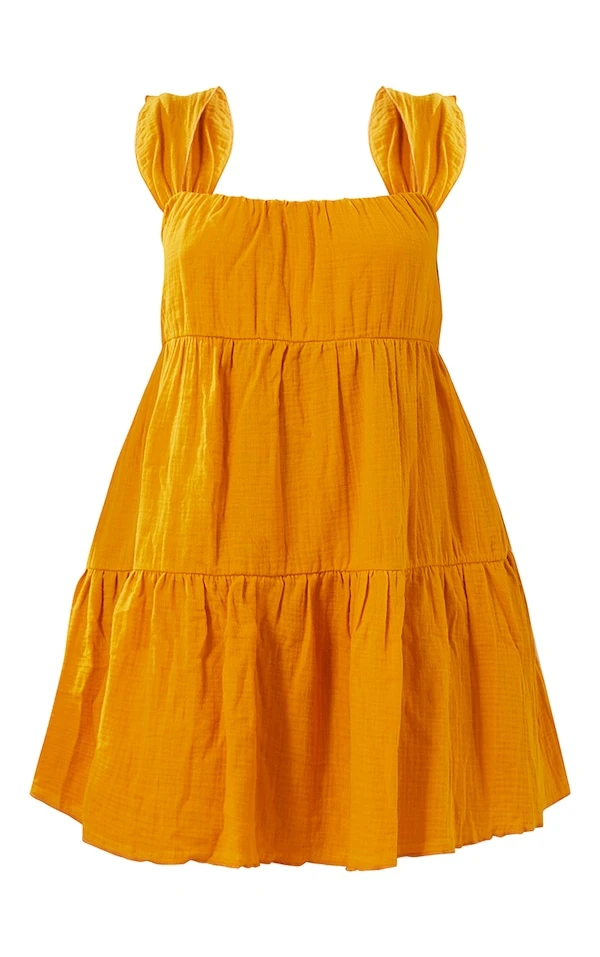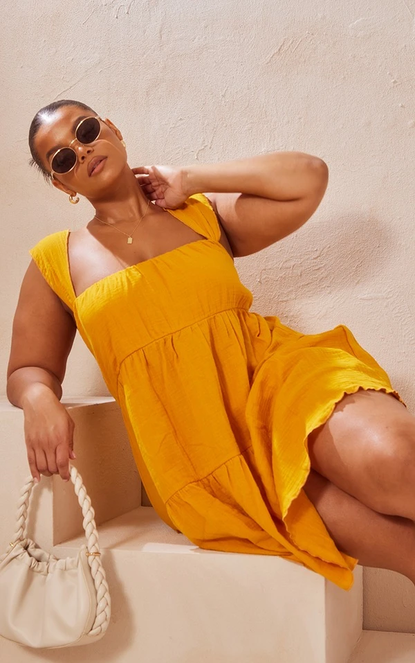 Iconic la robe ! Avec son coloris moutarde très cool, sa matière texturée et ses volants, elle nous a fait craquer. On enfile une paire de mules, on ajoute quelques accessoires et le look est finalisé ! Tellement mims.