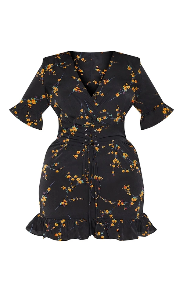 Plus Robe fluide noire à imprimé floral et corset