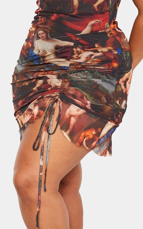 Plus Robe froncée en mesh imprimé Renaissance multicolore