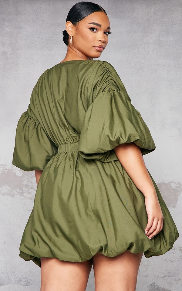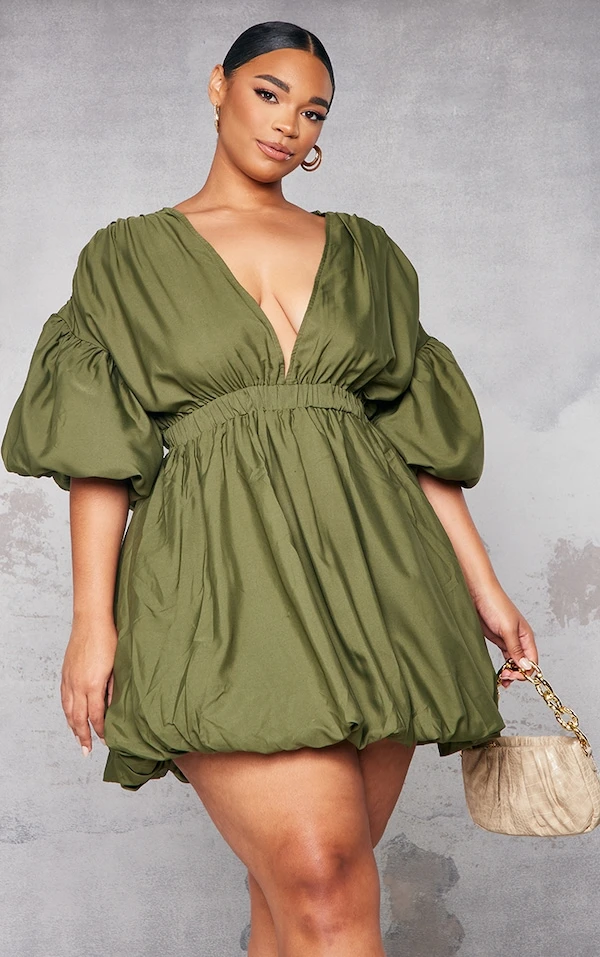 Plus Robe kaki bouffante à manches ballon