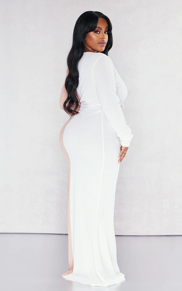 Vous êtes si belle avec cette robe ! C’est impossible de passer à côté de sa coupe longue très classe, de sa couleur blanche magnifique et de son design à deux tons. Portée avec une paire de talons hauts et quelques bijoux, cette pièce vous vaudra tous les regards !