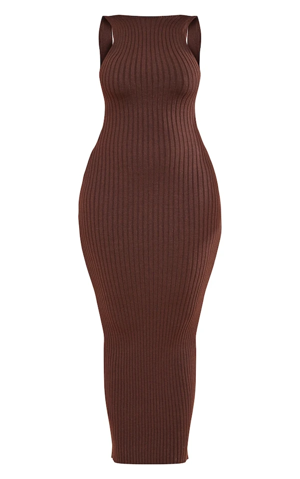 De toute beauté dans cette robe à la coupe longue. On aime la couleur chocolat de sa matière en maille tricot et son design à dos nageur échancré. Portée avec une paire de talons hauts et quelques accessoires, elle vous démarque tout en vous assurant un max de style à la prochaine soirée. Love it !