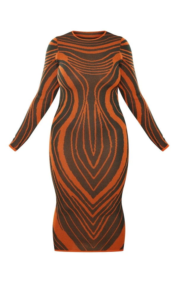 Plus Robe longue en maille tricot rayée kaki