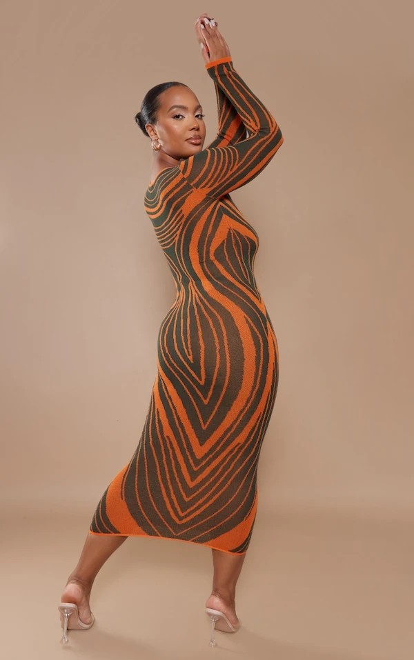 Trop belle dans cette robe longue. On aime sa couleur kaki et sa matière en maille tricot à rayures. Pour vous démarquer en soirée, portez-la avec une paire de mules et quelques accessoires. Vous allez faire sensation !