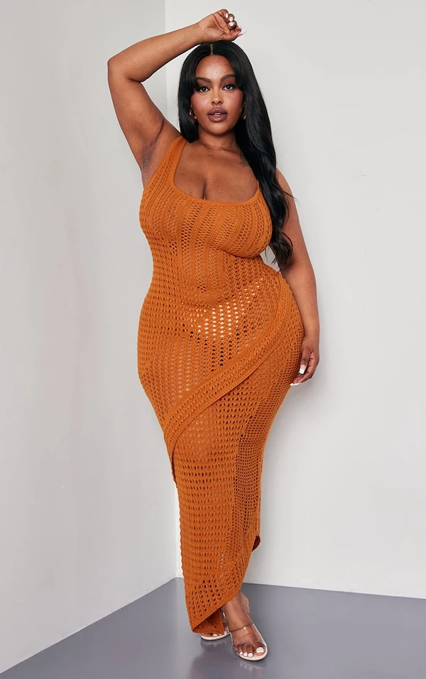 Plus Robe longue en maille tricot rouille à dos échancré