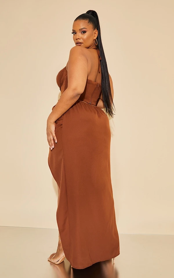 Plus Robe longue froncée chocolat deluxe à détail corset