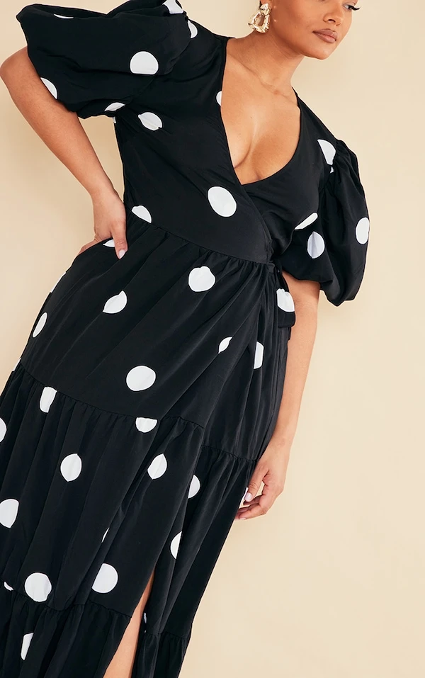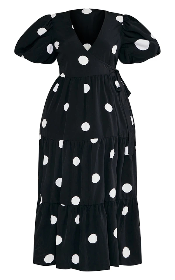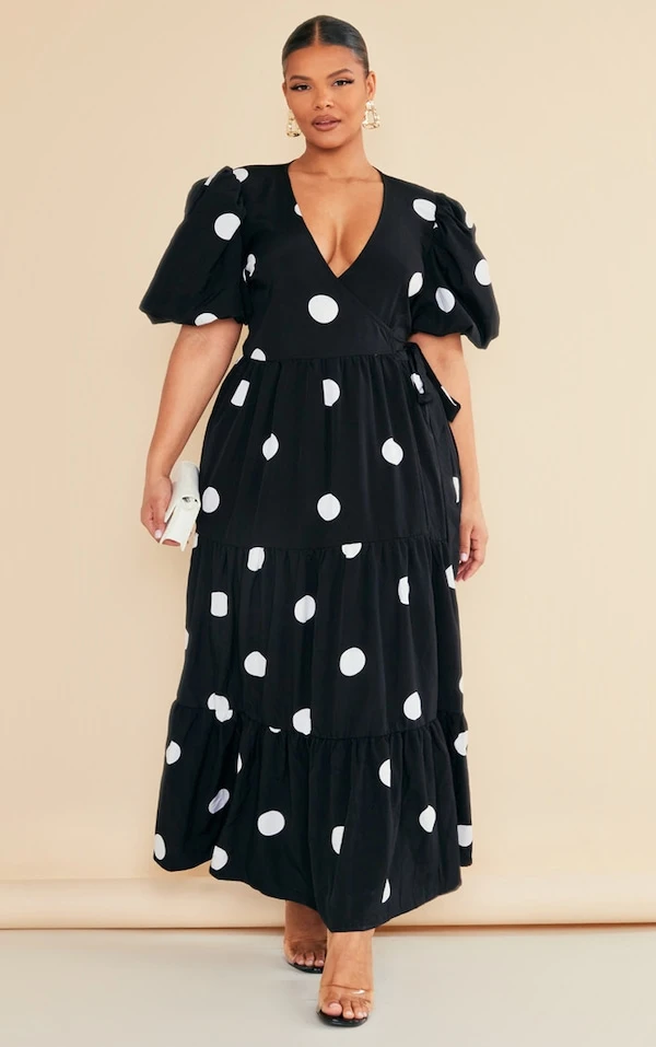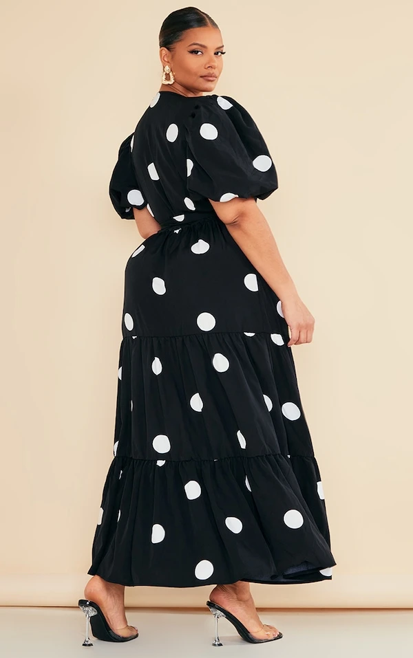 Plus Robe longue noire imprimé pois à taille nouée et étages
