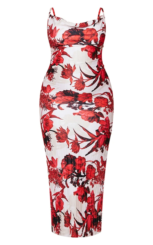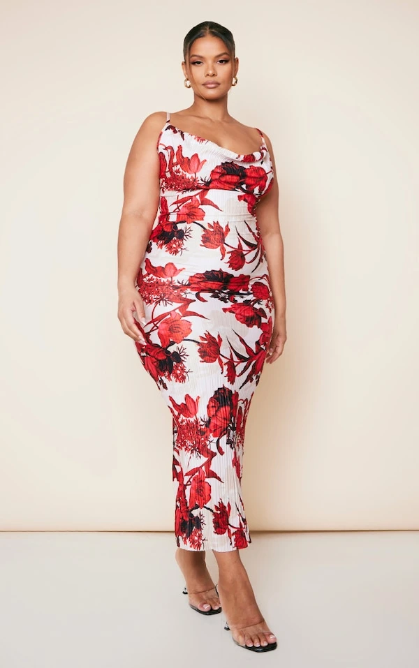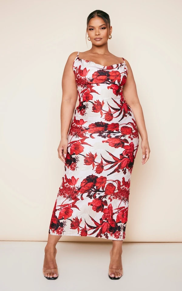 Plus Robe longue plissée nude à fleurs imprimées à bretelles