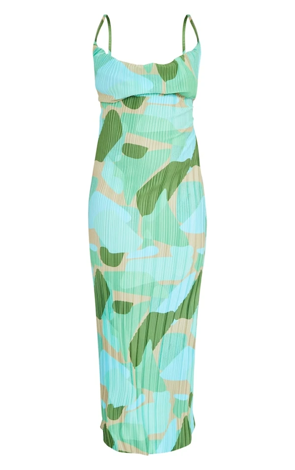 Plus Robe longue plissée verte imprimé abstrait à bretelles