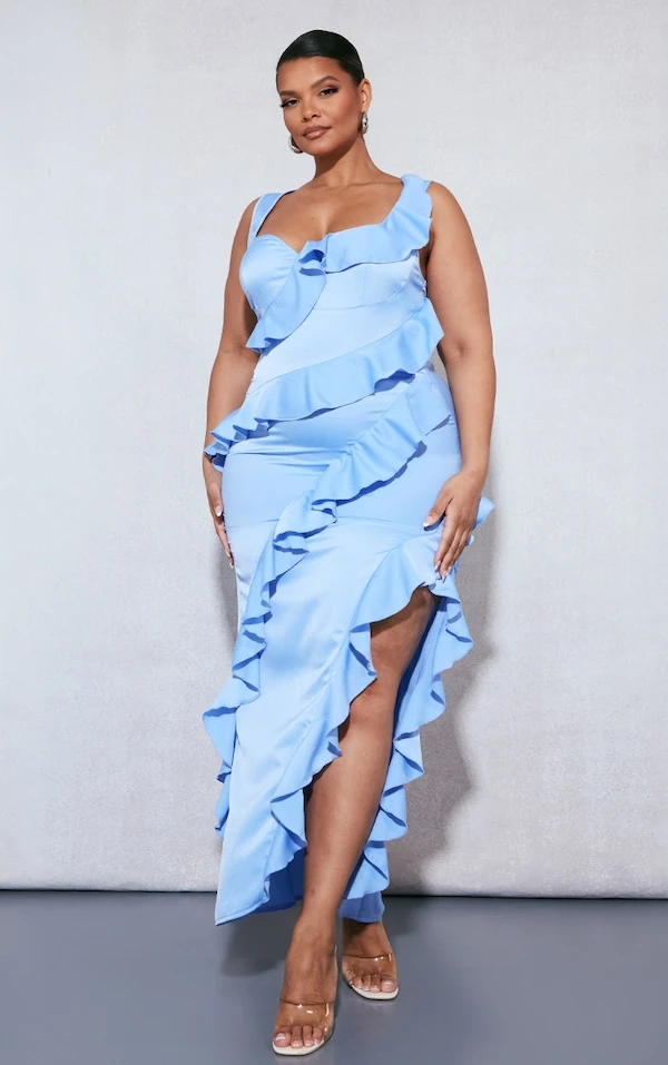 Plus Robe longue satinée bleue à étages