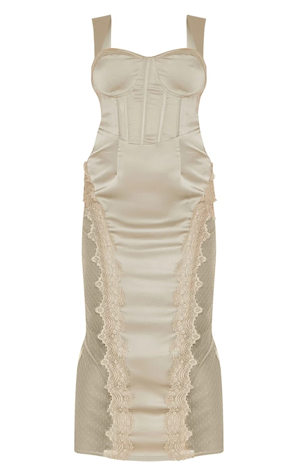 Plus Robe longue vert sauge à corset et parties en dentelle