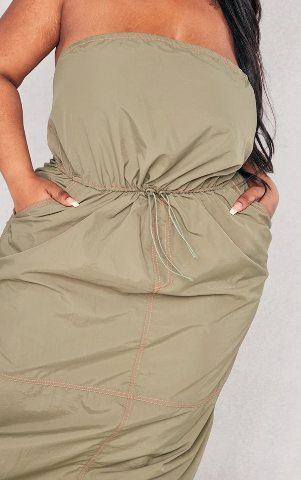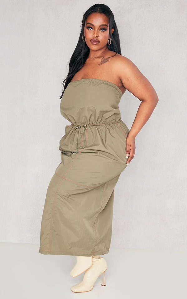 Plus Robe mi-longue bustier en nylon kaki à détail coutures
