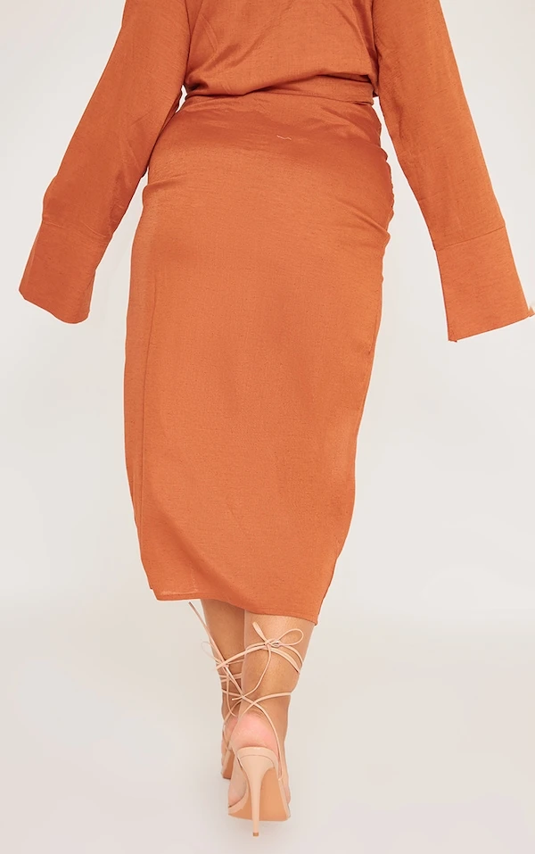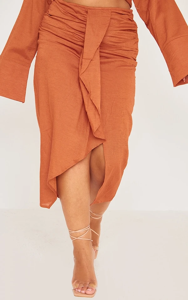 On craque pour cette robe ! Avec sa couleur rouille canon, son effet lin léger et son effet drapé devant, elle a tout d’une pièce culte. Il vous suffit de la porter avec une paire de sandales à talons et quelques accessoires pour attirer tous les regards en soirée. Vous êtes sensationnelle !