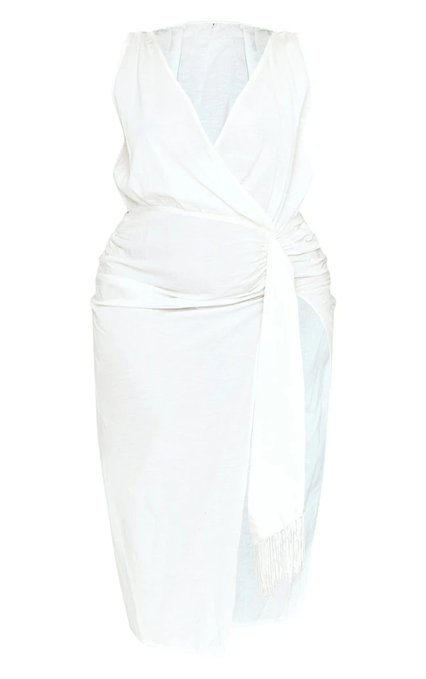 Plus Robe mi-longue en effet lin crème à détail drapé