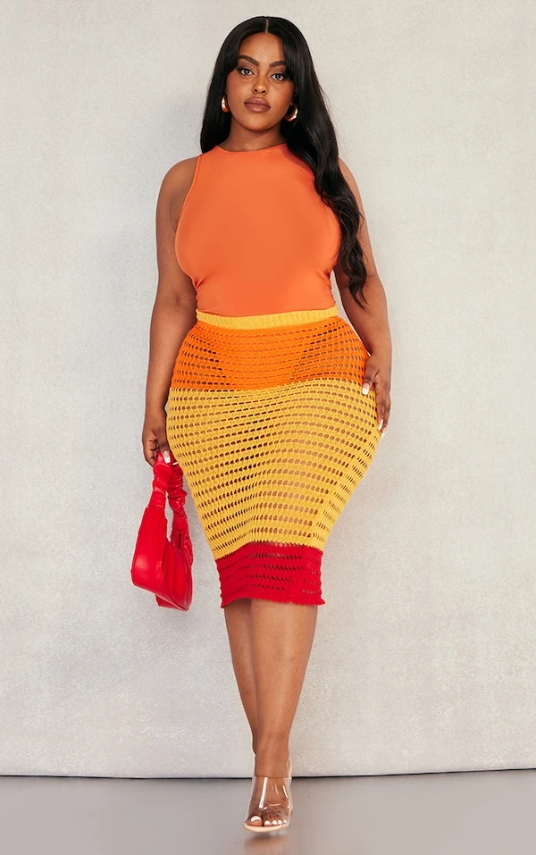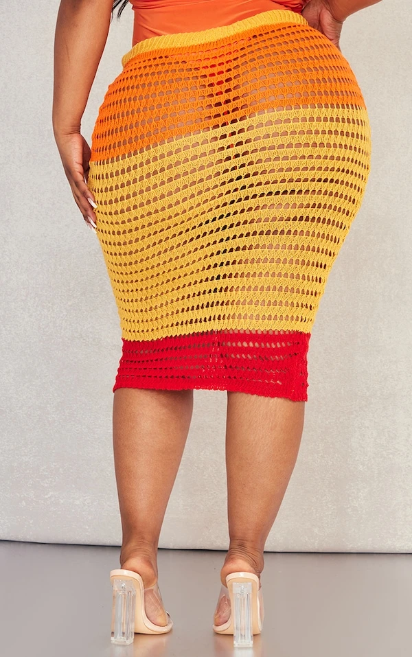 Plus Robe mi-longue en maille tricot orange à rayures