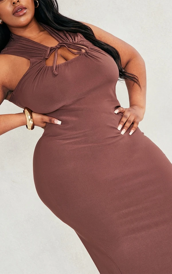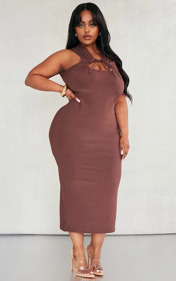 Plus Robe mi-longue moulante chocolat froncée