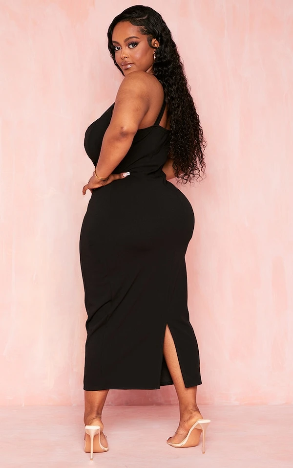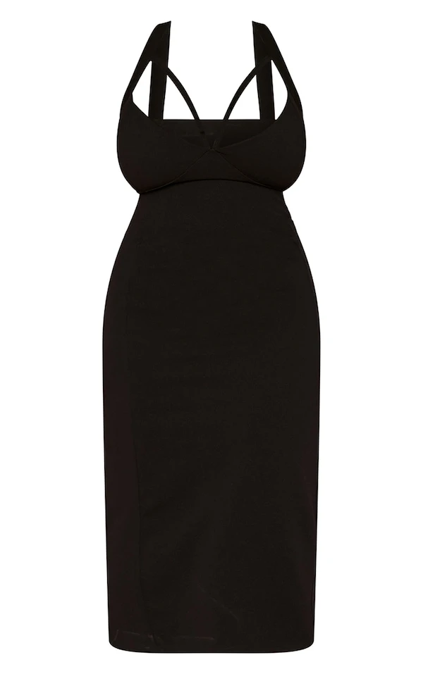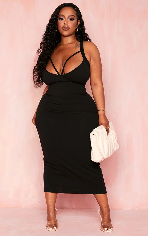 Plus Robe mi-longue noire à bretelles et lanières