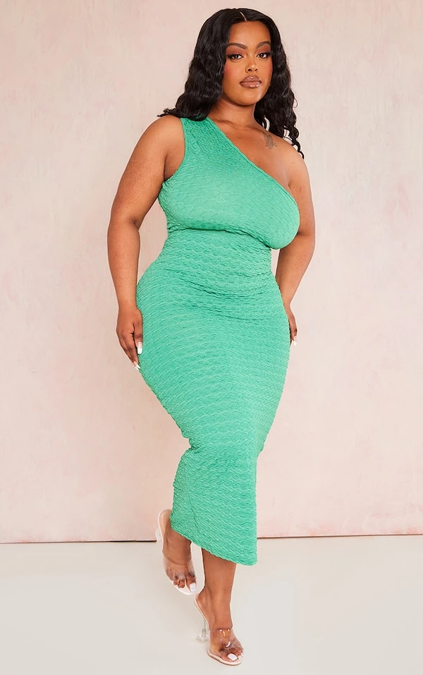 Plus Robe mi-longue vert olive effet bulle texturée asymétrique