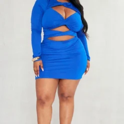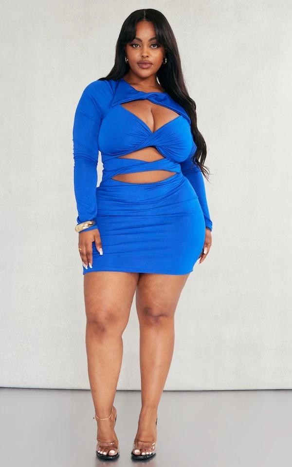 Plus Robe moulante à manches longues bleu vif découpée