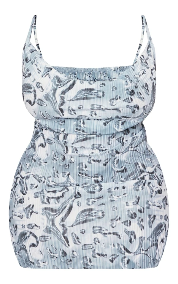 Plus Robe moulante argentée imprimé liquide plissée à col bénitier