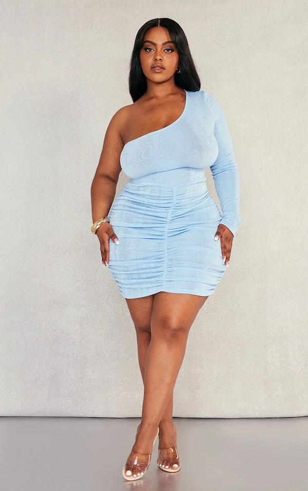 Plus Robe moulante asymétrique en acétate bleu clair