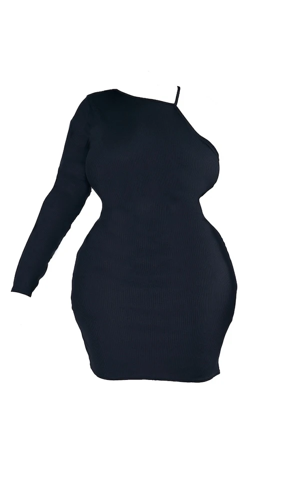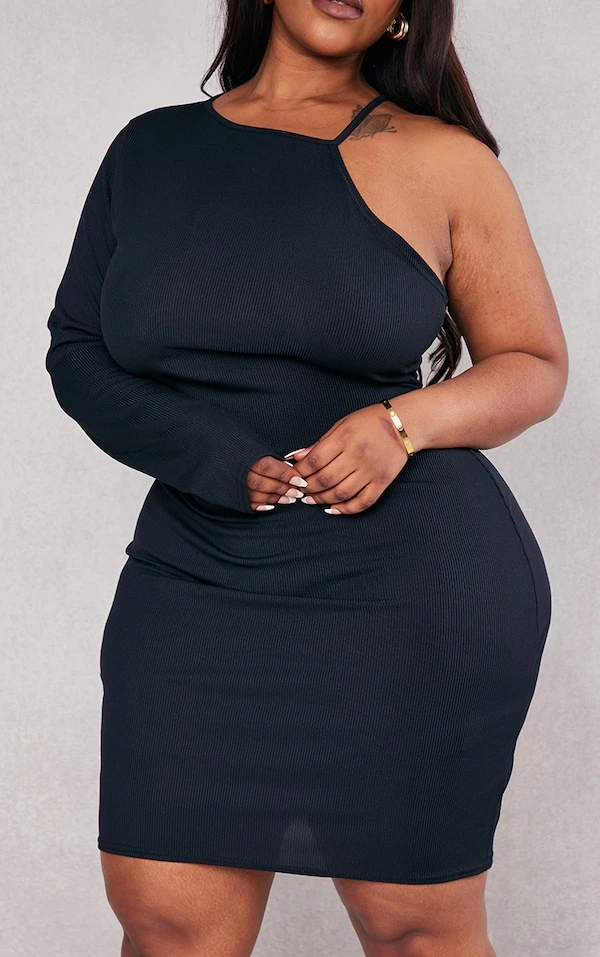 Plus Robe moulante asymétrique noire découpée