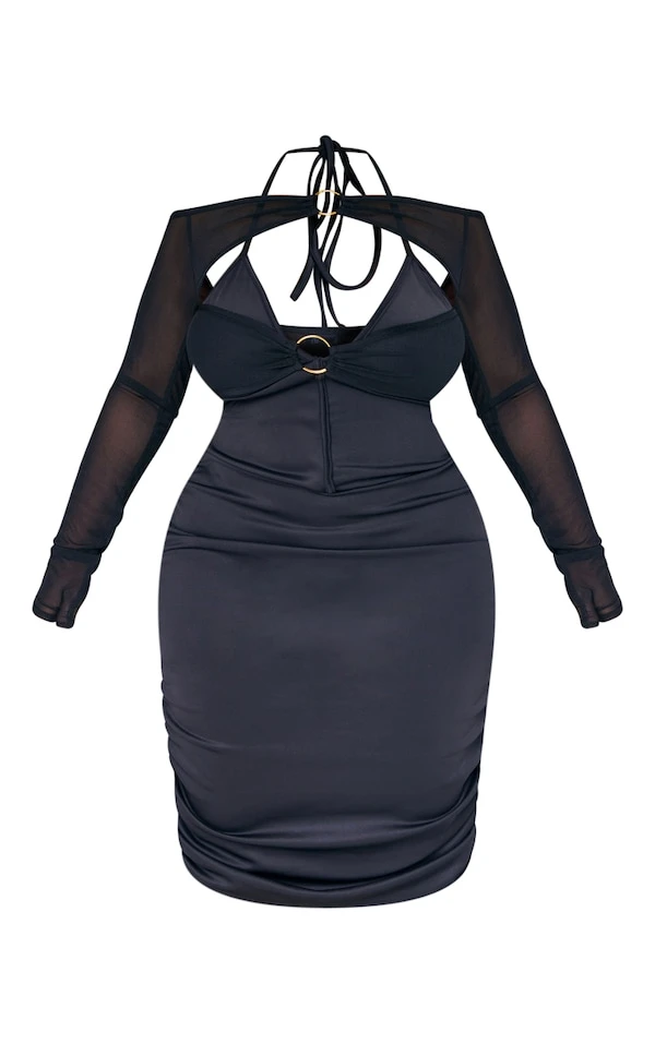 Plus Robe moulante dos nu noire à bretelles et anneaux