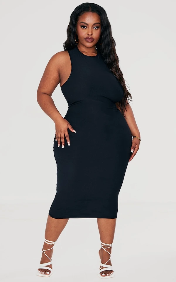 Plus Robe moulante douce noire à dos nageur