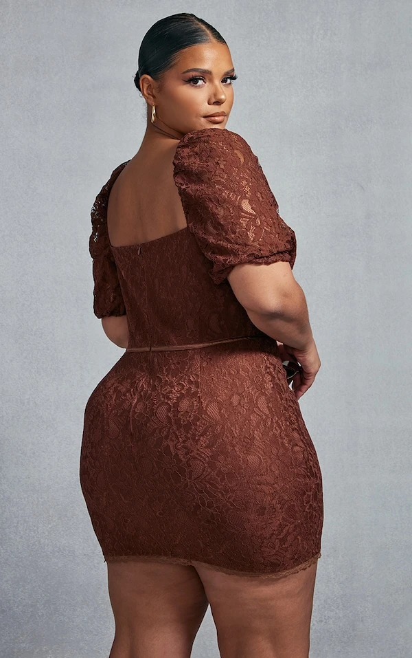 Plus Robe moulante en dentelle chocolat à bonnets