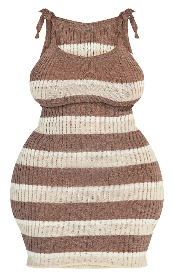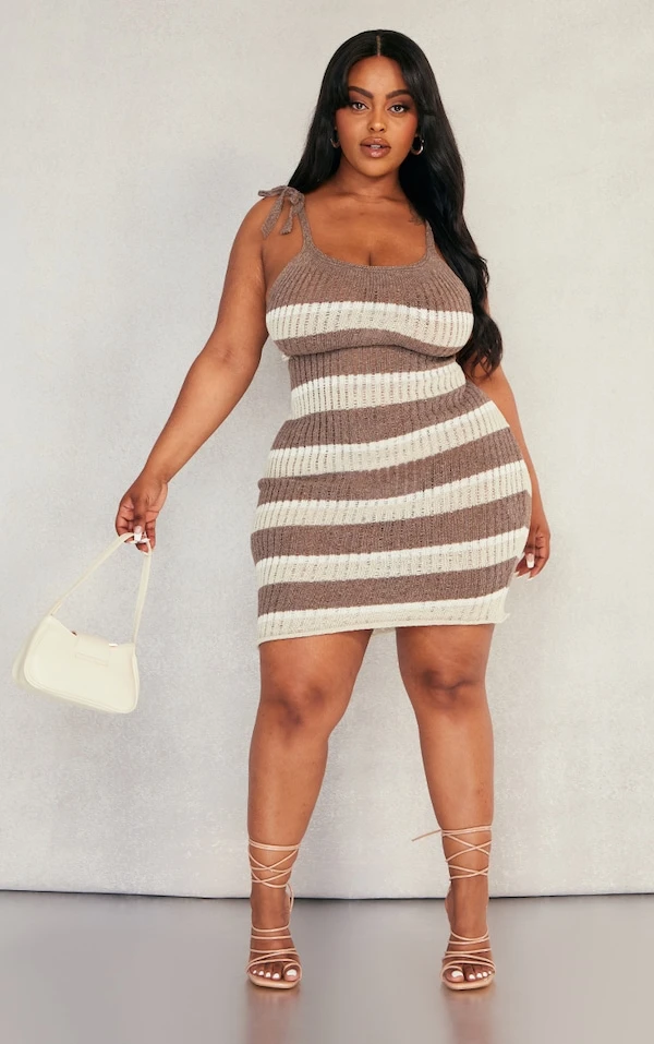 Plus Robe moulante en maille tricot gris pierre à rayures