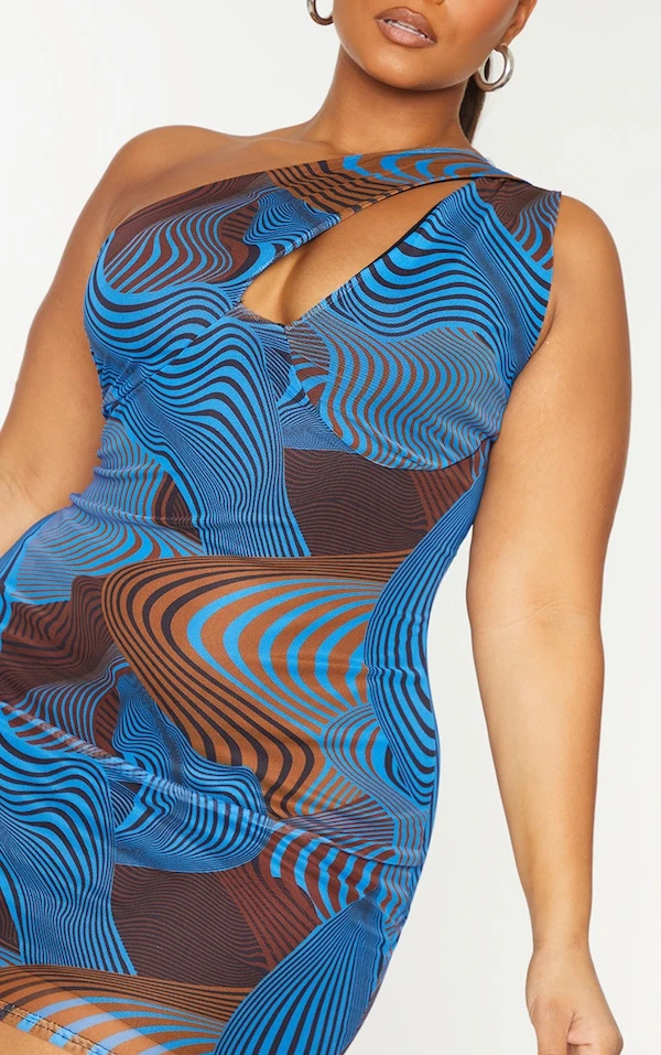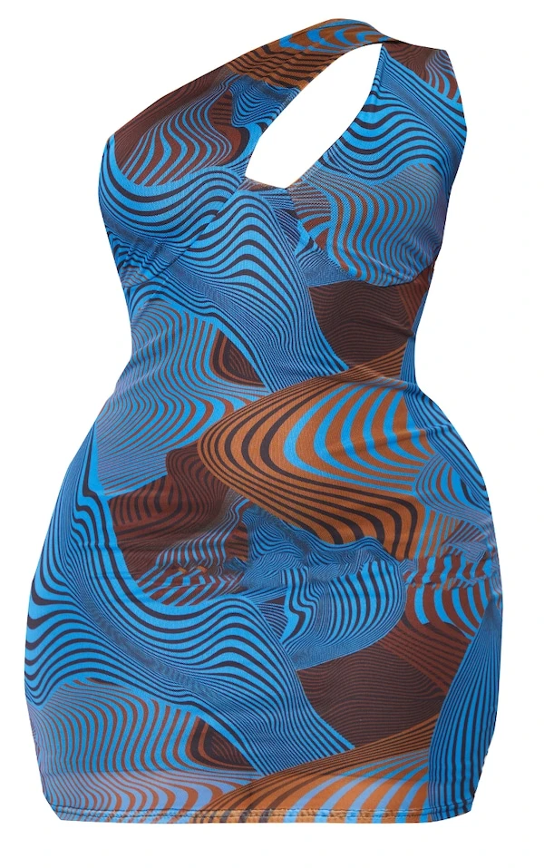 Plus Robe moulante en mesh bleu imprimé contours à épaule unique
