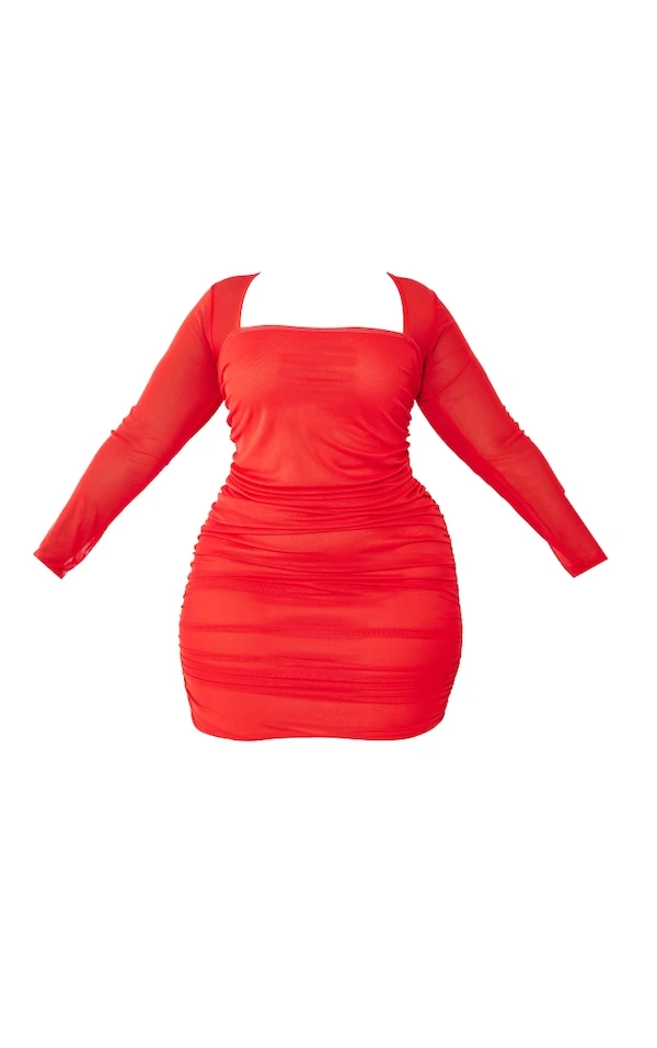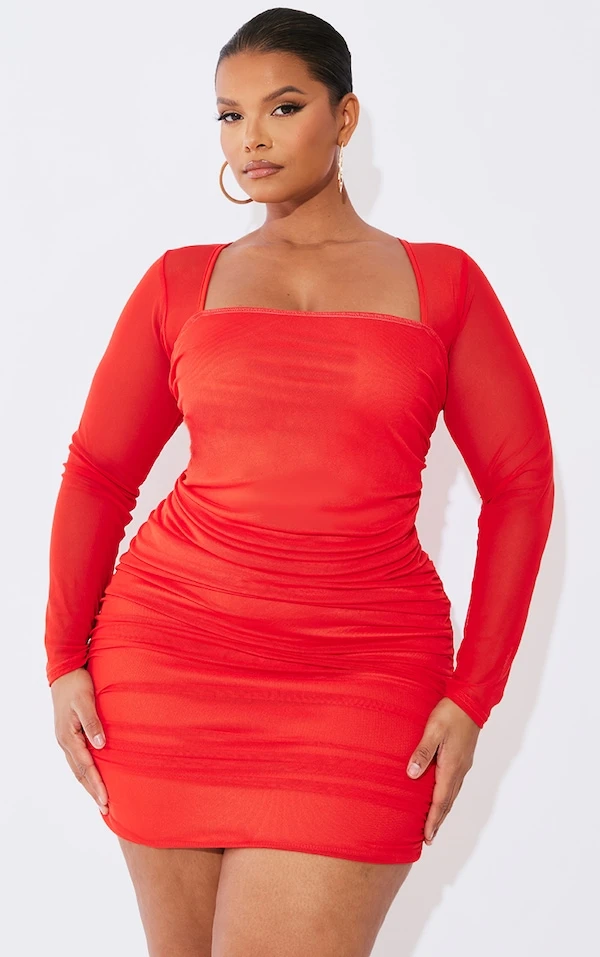 Si belle dans le coloris rouge de cette robe moulante. Avec sa matière en mesh à l’effet froncé et son col carré, elle nous a charmées en quelques secondes. On la porte sans hésiter avec une paire de mules et quelques accessoires pour rejoindre les copines en ville. Love it !