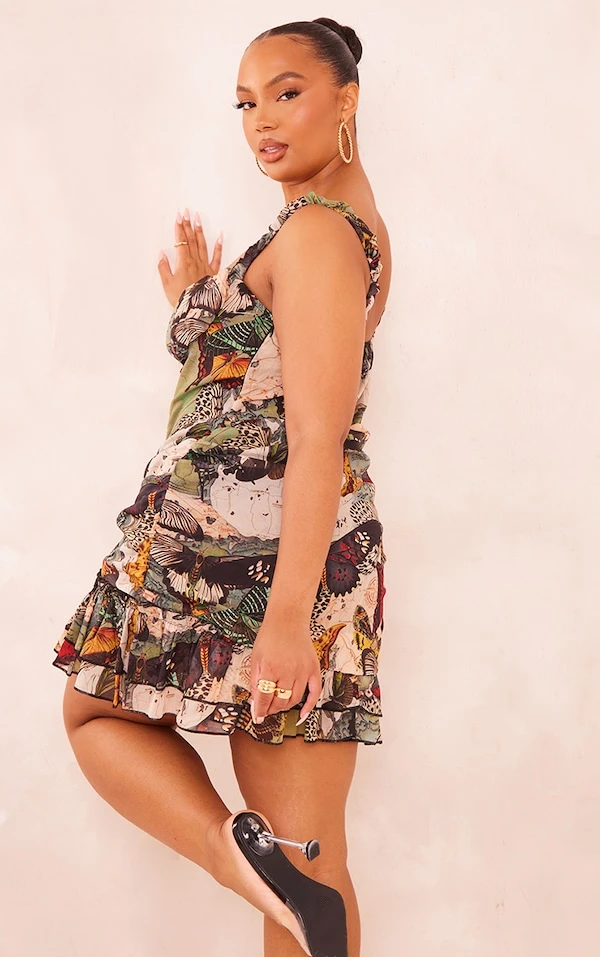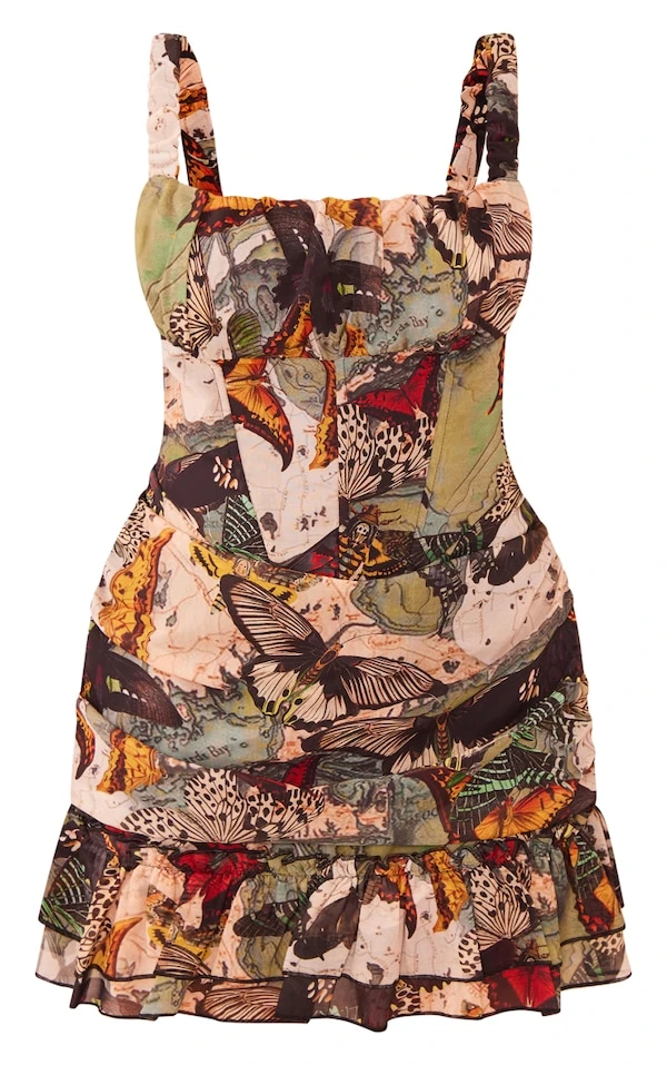 Plus Robe moulante en mousseline de soie multicolore imprimée à détail corset
