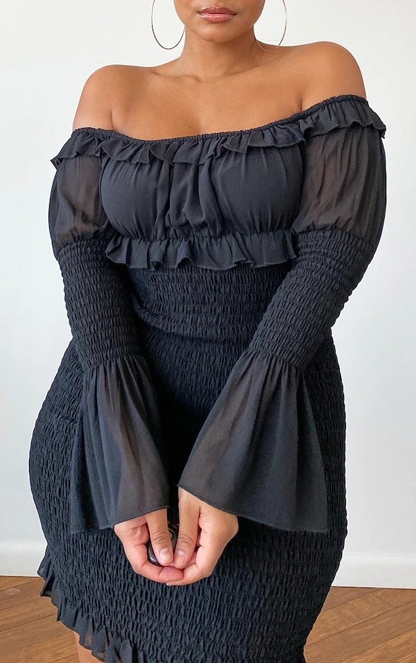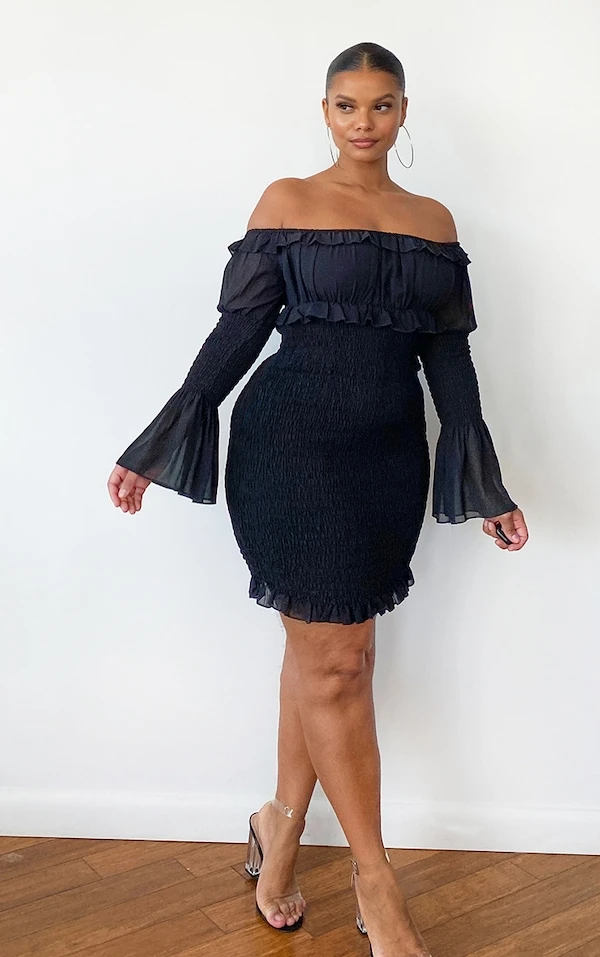 In love de cette robe moulante! Avec sa mousseline de soie toute douce, son noir indémodable et son effet froncé, elle s’impose comme une pièce culte des fans de look rétro 3