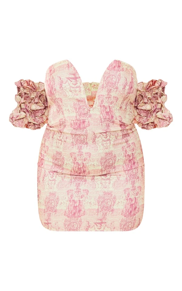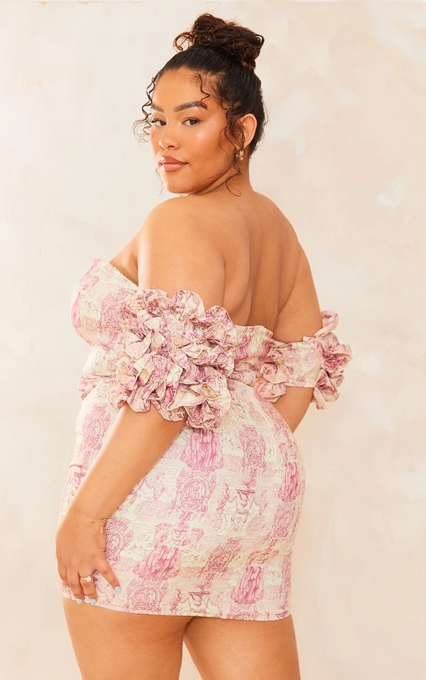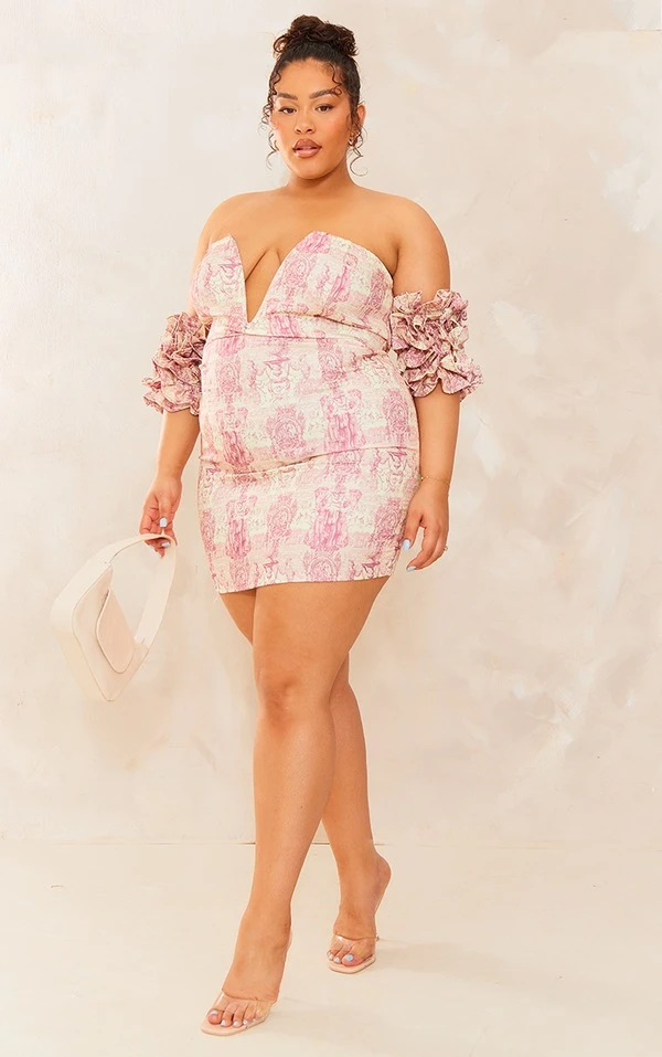 Plus Robe moulante marron imprimé statue à col en V et manches volantées