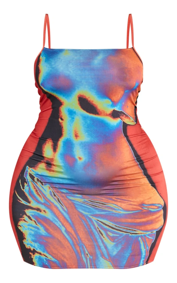 Plus Robe moulante multicolore imprimé chaleur corporelle à bretelles
