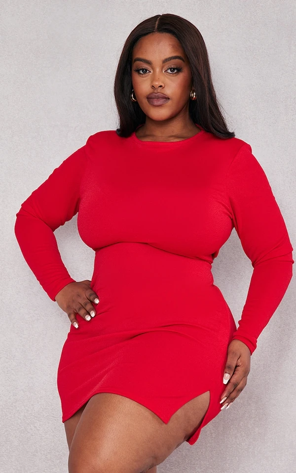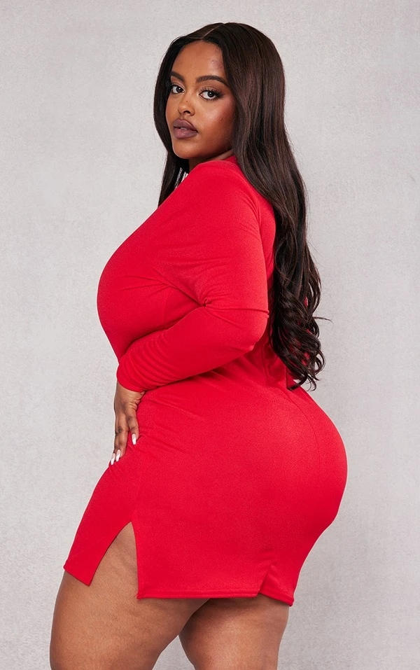 Plus Robe moulante rouge fendue à épaulettes