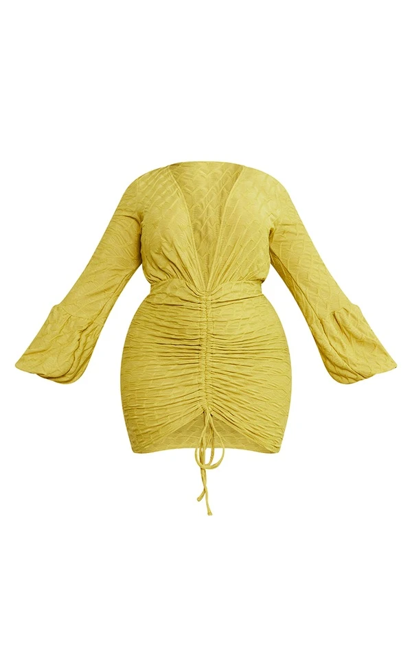 Plus Robe moulante texturée froncée chartreuse à décolleté