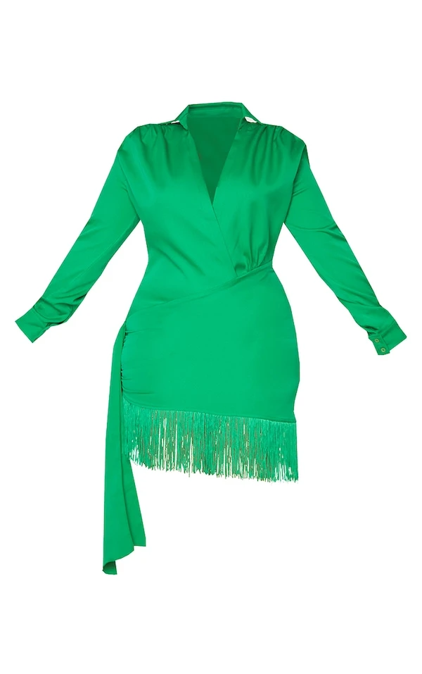 Plus Robe moulante vert vif effet drapé à manches longues et franges